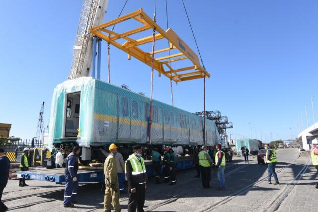 ووضح أنه  فور وصول القطار إلي الميناء تم انزاله ووضعه على قضبان السكك الحديدية تمهيدا لنقله إلي ورشة المترو بالعباسية لعمل الاختبارات التجريبية لضمه لأسطول القطارات العاملة حاليا على الخط الثالث.