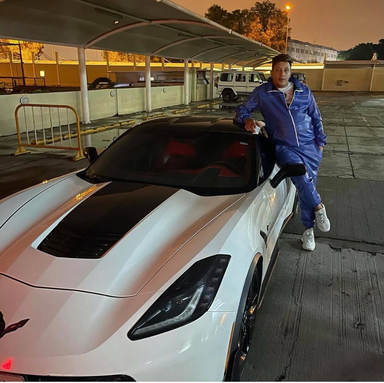 بـ”الترنج الأزرق”.. حمو بيكا ”يحمد ربنا” على ”شيفروليه كورفيت C7”