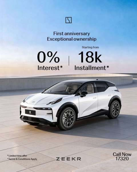 بمناسبة مرور عام على إطلاق علامة "ZEER" فى السوق المصرية، أعلنت الشركة عن تقديم عرض خاص على السيارة "ZEEKR X"، لفترة محدودة، على أن يقوم العميل بدفع مقدم 50% من قيمة السيارة، مع إمكانية تقسيط باقى المبلغ على عامين بدون فوائد، أو التقسيط حتى 5 سنوات بأقساط شهرية تبدأ من حوالى 18,000 جنيه شهريًا
