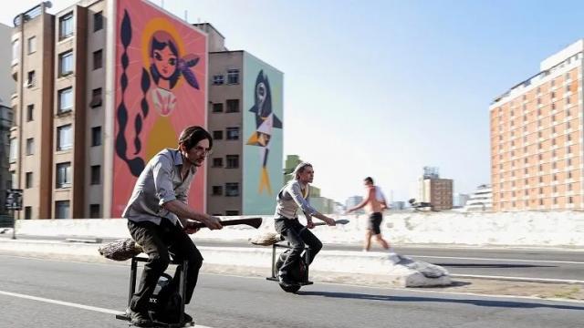 في عطلة نهاية الأسبوع الأخيرة، يمكن رؤية فينيسيوس سانكتوس، 39 عامًا ، وأليساندرو روسو، 28 عامًا، يتجولان في الطرق الرئيسية بالمدينة على زوج من أعواد المكنسة ، كل واحدة متصلة بعجلة آلية واحدة.