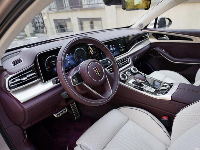 تم تصميم شعار Hongqi بالأحمر كخط رفيع يبدأ من منتصف غطاء المحرك وصولاً الى الشبكة.